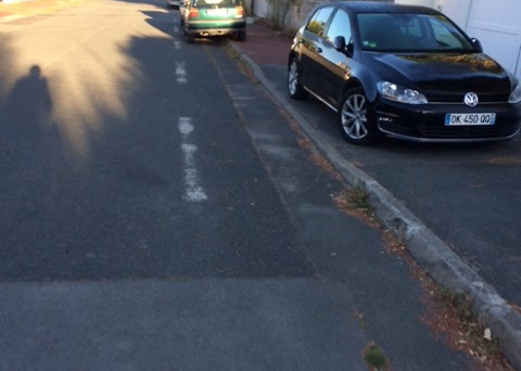 Le cycliste salut ce bel effort de concertation des voitures et automobilistes à Aytré pour embêter : vélos, poussettes, piétons et fauteuils roulants ! Bande cyclable inutilisable et voitures sur le trottoir !